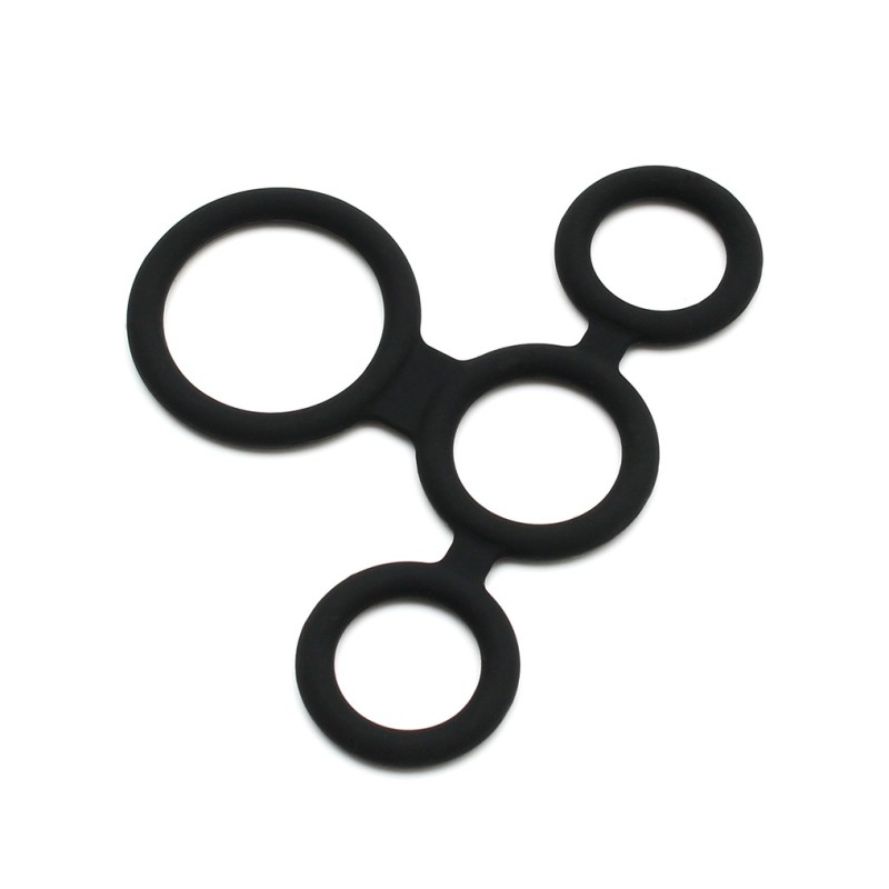 Cockring 4 Anneaux & BallsStretchers - Noir Silicone - RIMBA