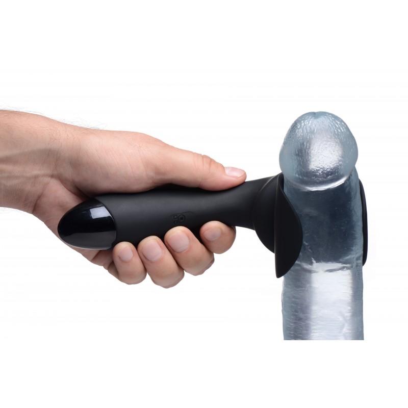 masturbateur vibrant wand avec 10 rythmes de vibrations et un anneau se glissant sur le pénis. Recharge USB. En silicone