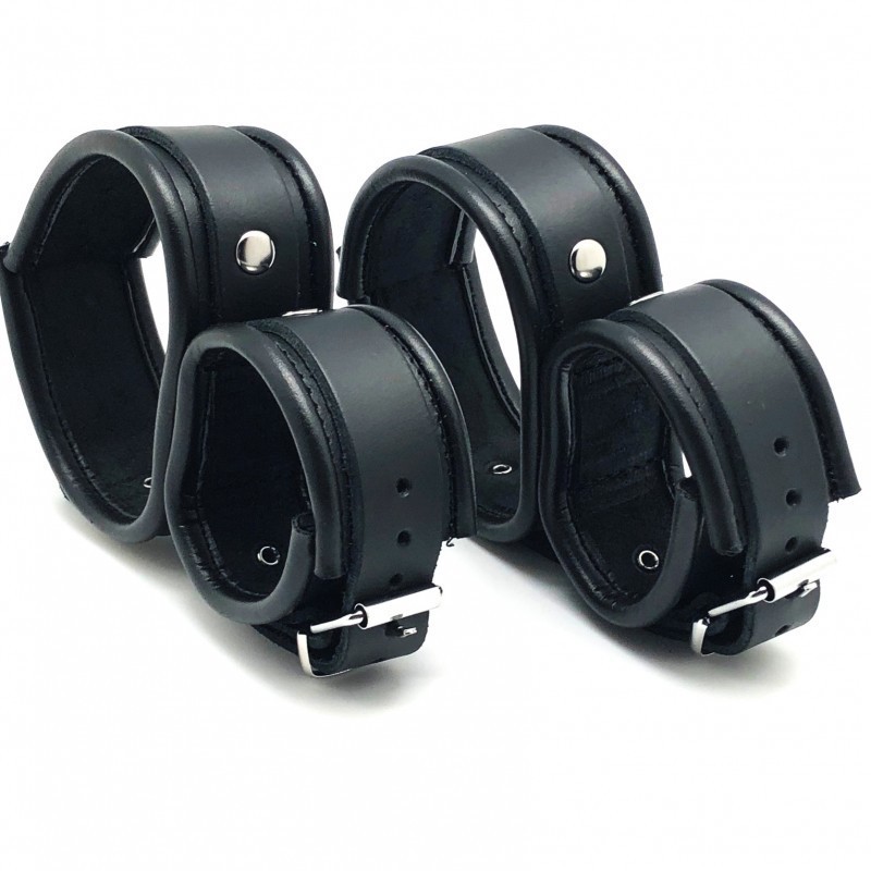 Menottes mains et pieds liés pour la soumission avec Sangles ajustables facilement. En cuir véritable