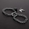 Menottes réalisées en métal sous forme d'une chaîne qui forme deux boucles. Pour placer autour des poignets ou des chevilles. Avec cadenas pour un peu plus d'adrénaline