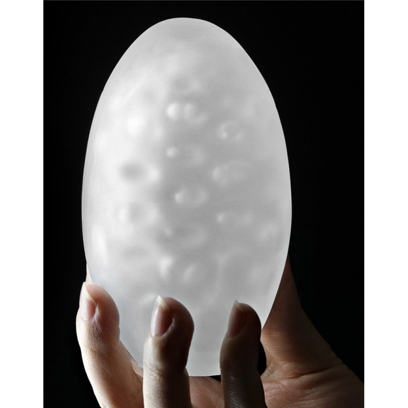 Le pénis est stimulé au moyen des bulbes mous dans la structure interne de l'œuf de masturbation.
