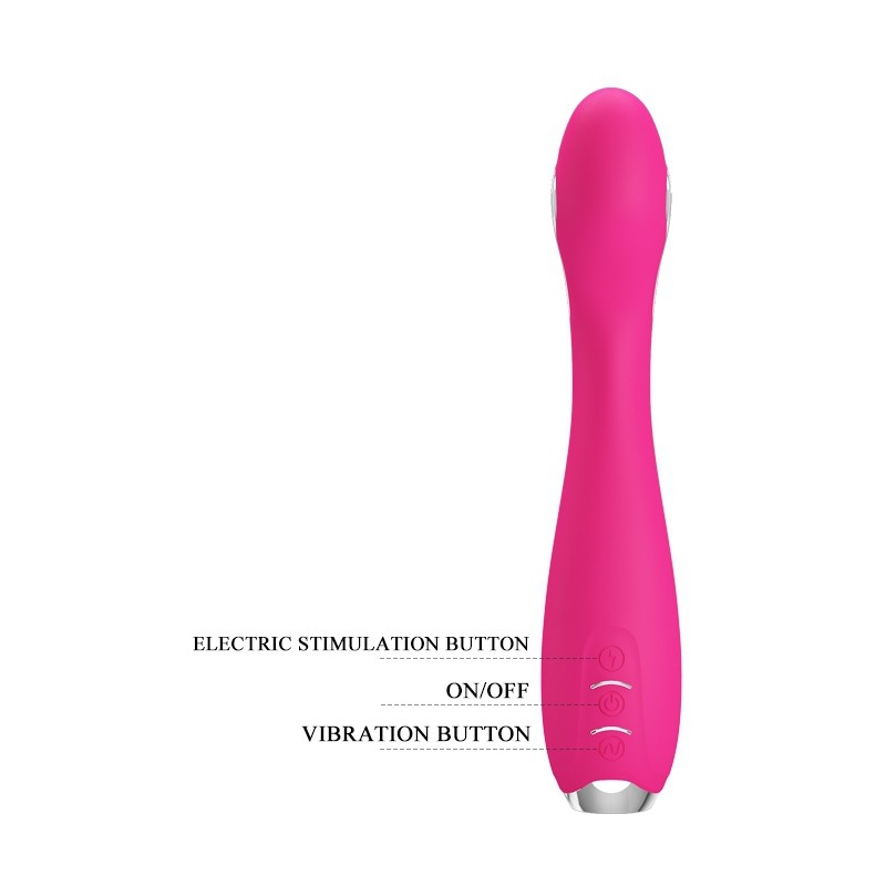 Sextoy Vibro avec 5 modes d'électro-stimulation. 7 rythmes de vibrations. Longueur de 19.5cm. Largeur de 3.2cm. USB. En silicone